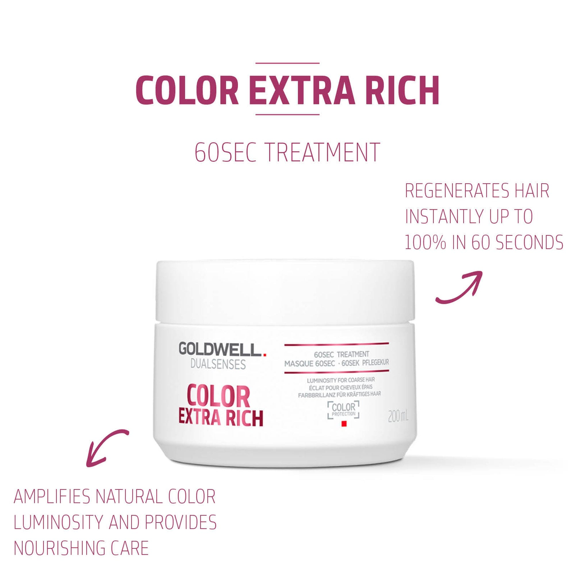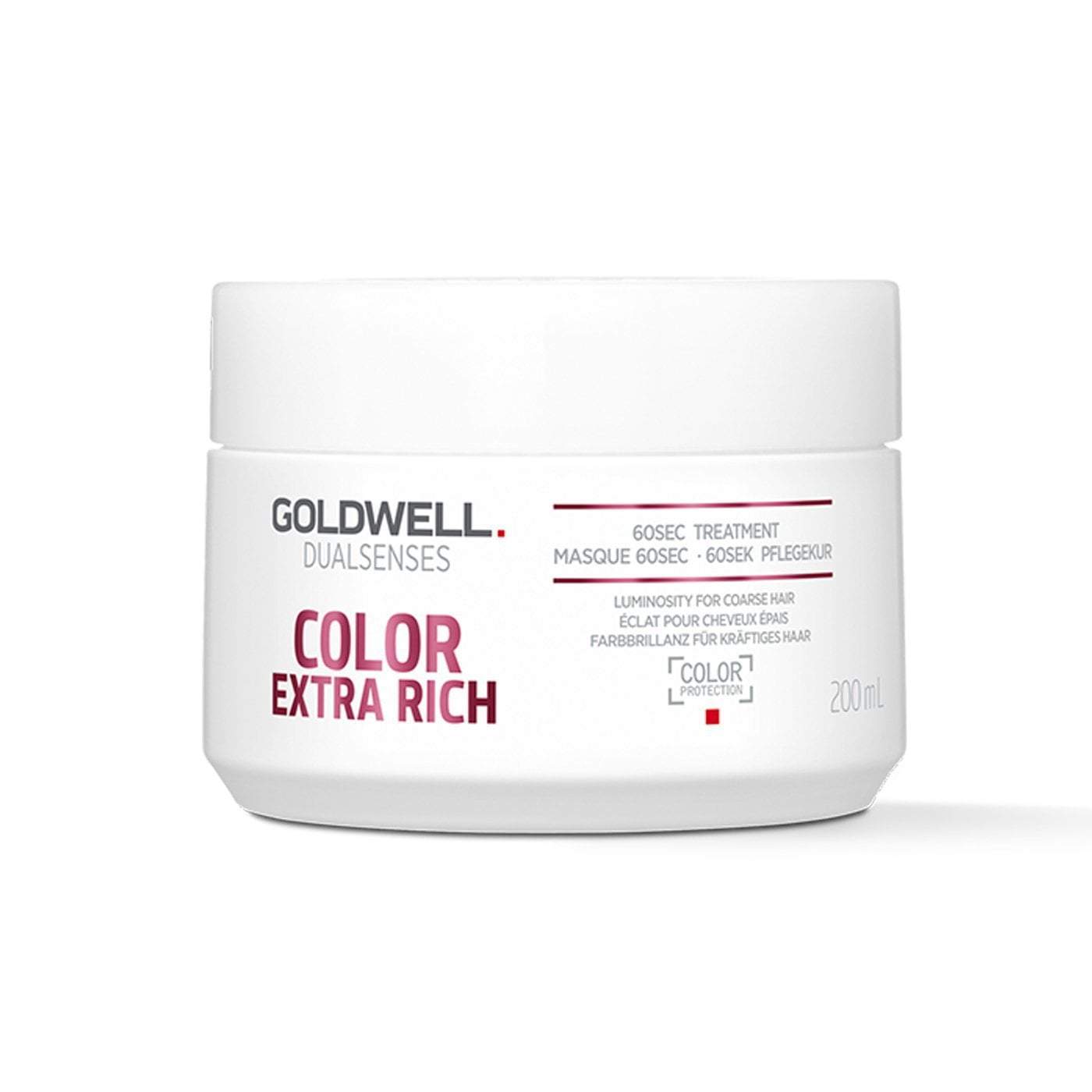 Goldwell Dualsenses Color Extra Rich 60 Second Treatment regenerates hair instantly, amplifies color luminosity, and provides nourishing care. Perfect for vibrant, healthy hair.