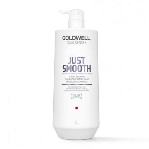 Goldwell Dualsenses Just Smooth Taming Shampoo 1000ml is a gentle shampoo that instantly creates manageability and frizz control for unruly hair while minimizing color fading with every use.