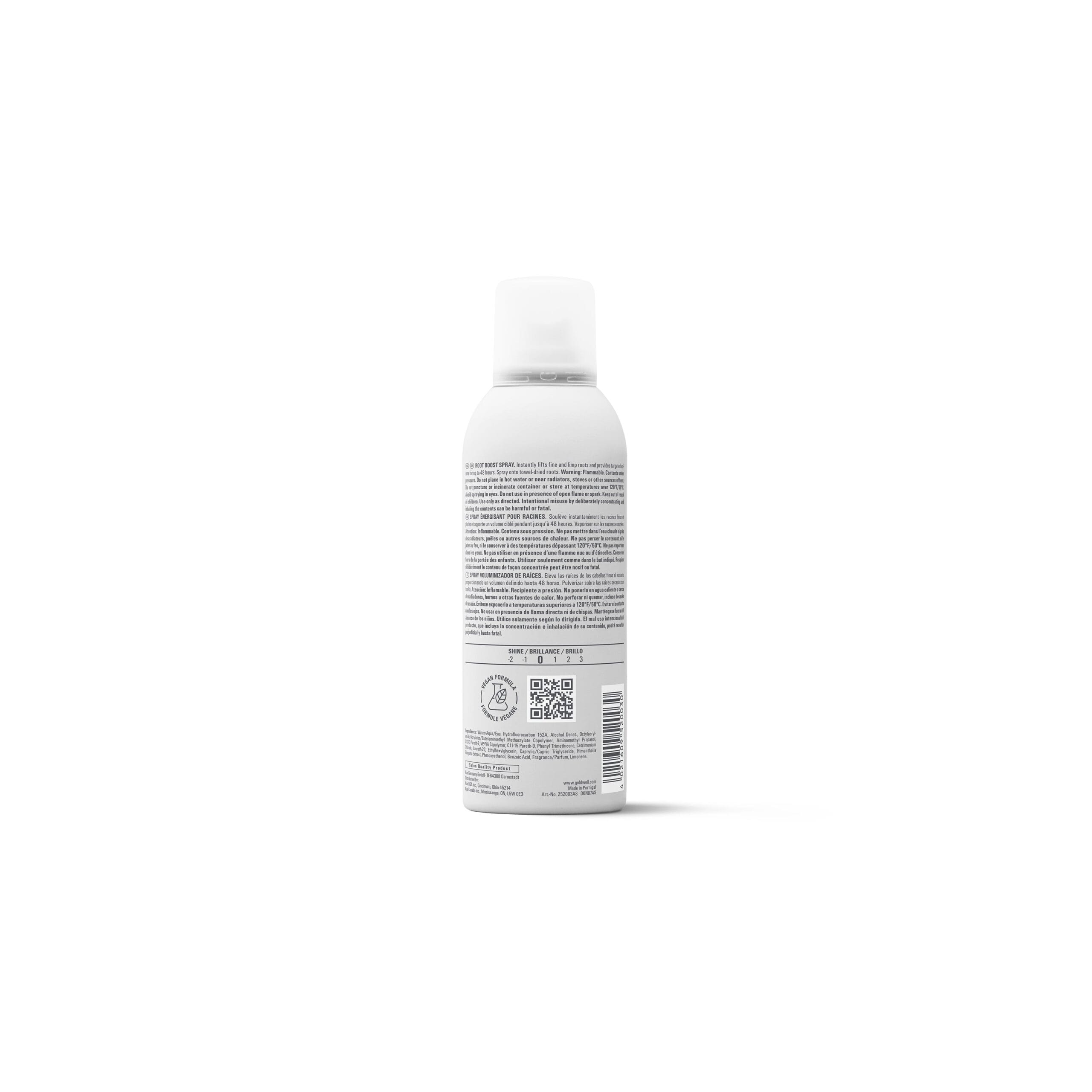 Goldwell StyleSign Root Boost Spray adds volume, protects against damage, and leaves hair vibrant. Ideal for adding lift and body.