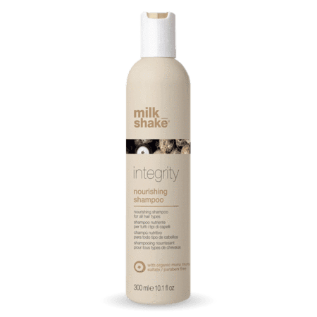 The milk_shake Integrity Nourishing Shampoo is a sulfate and salt-free shampoo that is perfect for all hair types. It is designed to nourish, calm, and protect hair while injecting moisture into dry ends and protecting hair color. The shampoo contains Muru muru Butter, which is rich in fatty acids that have a nourishing, soothing, and moisturizing effect on hair and skin. It also contains Vitamin A, which repairs, nourishes, and strengthens hair.