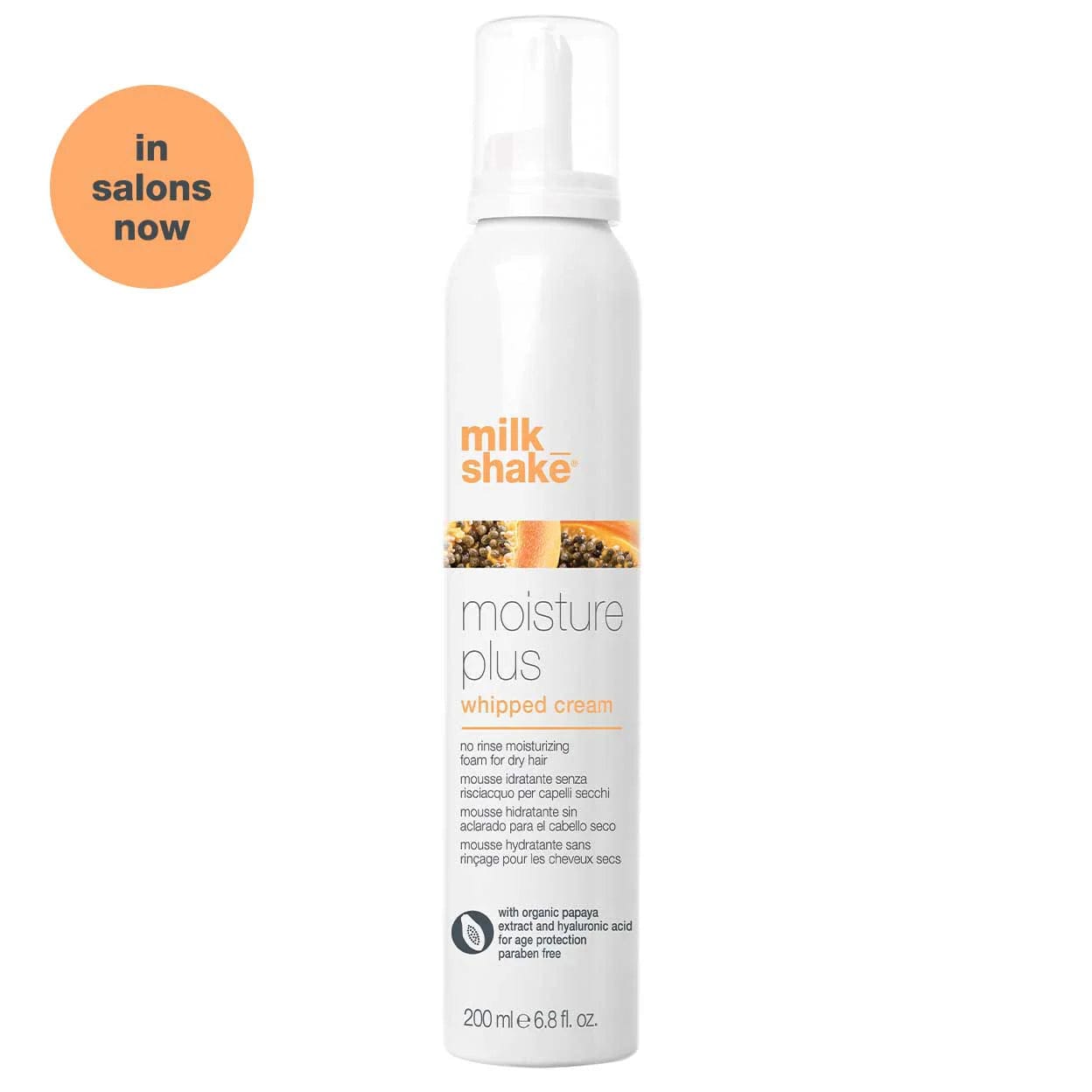 milk_shake Moisture Plus Whipped Cream: This leave-in conditioner is formulated with a blend of natural ingredients, including milk proteins, honey extracts, and vitamin-rich fruit extracts, to provide deep hydration and nourishment to dry and damaged hair, leaving it soft, shiny, and healthy.