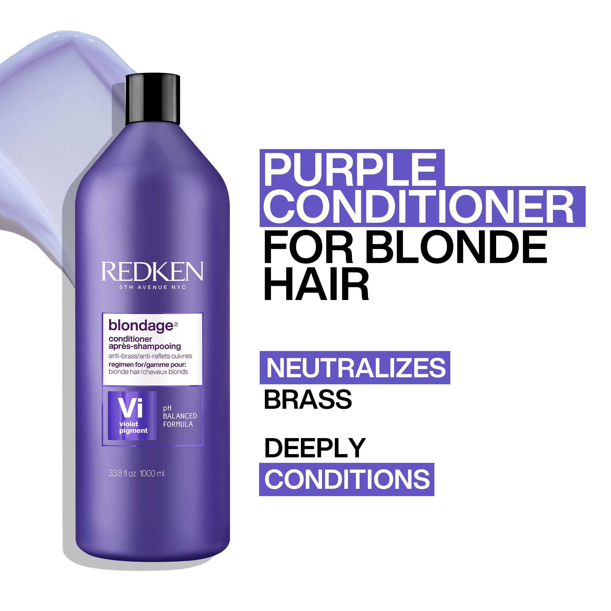 Redken Color Extend Blondage Conditioner 1000ml is a color-depositing and protecting purple conditioner and hair toner for blonde and highlighted hair.
